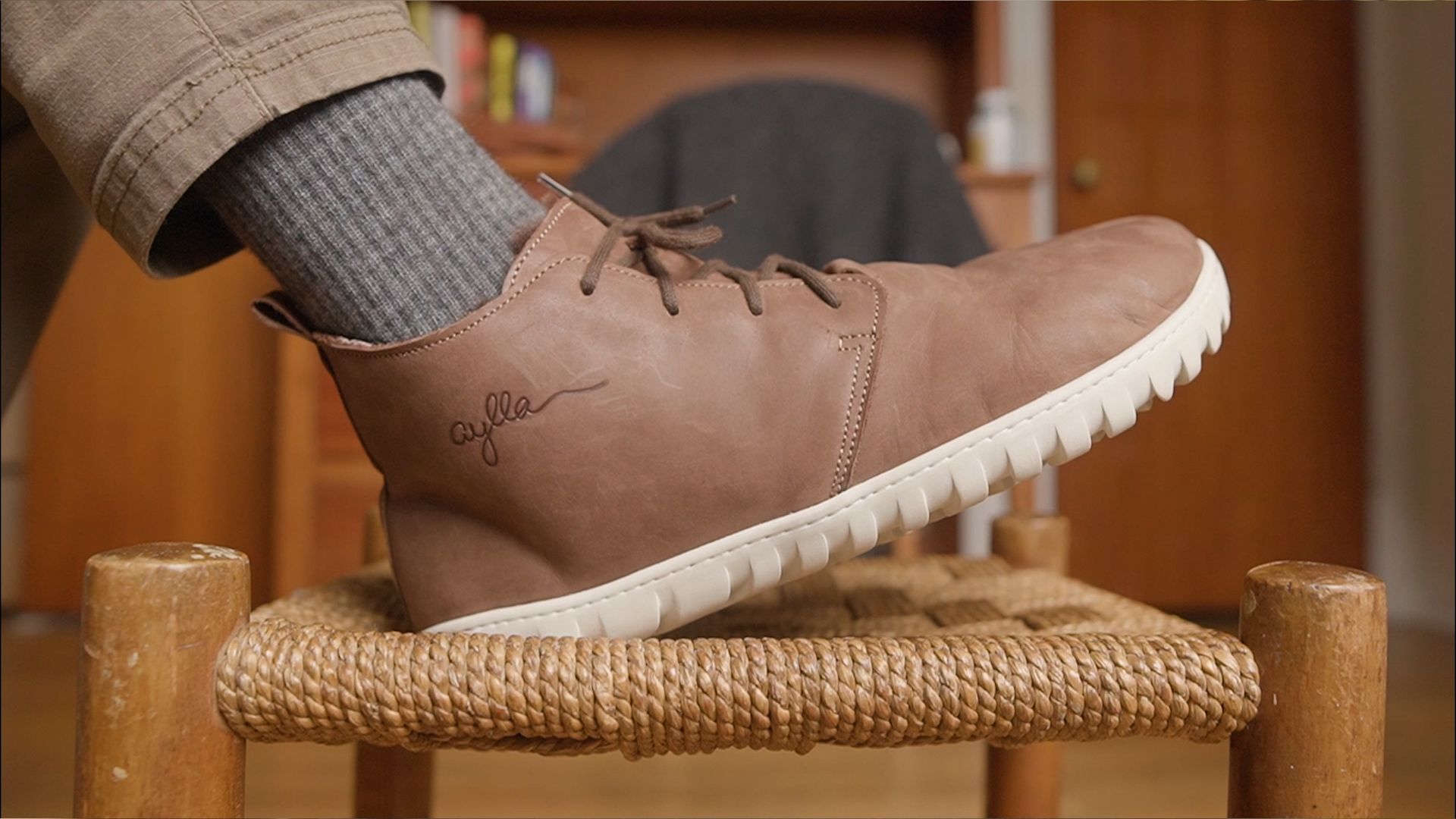Hello, my name’s Andrew, and these are the Aylla Tiksi Winter, a leather barefoot shoe with warm fur insulation and a durable tread for winter casual.