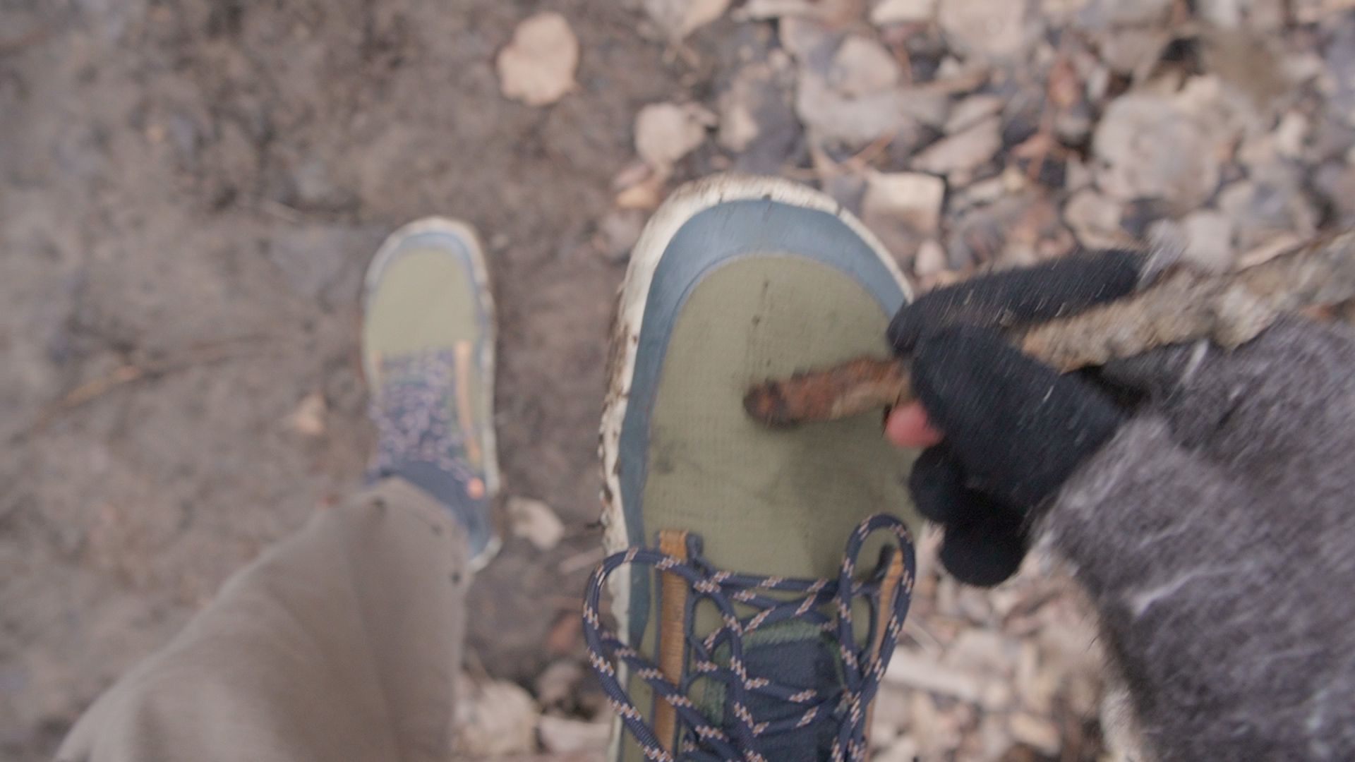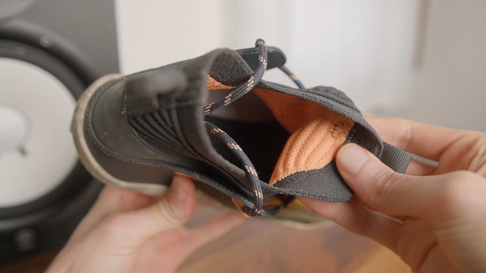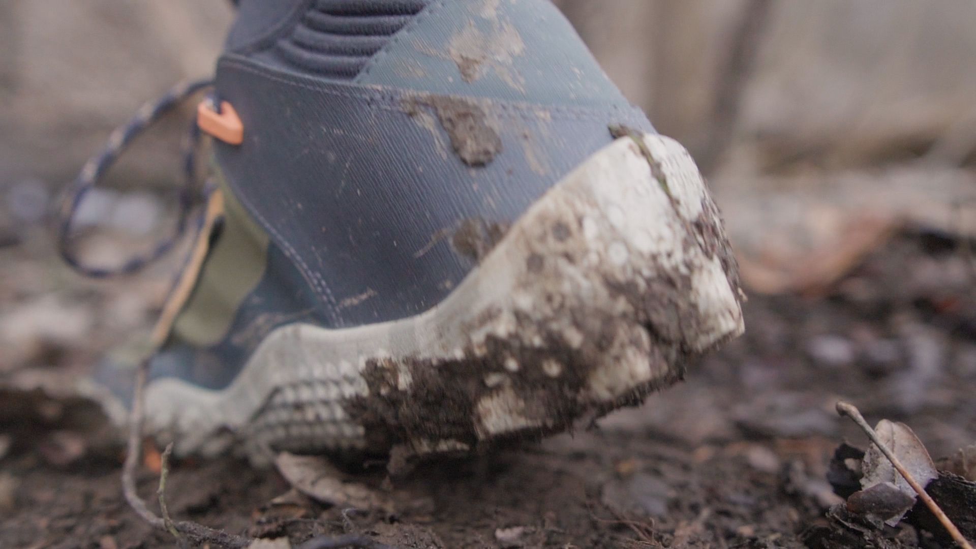 Along a swampy area the water-resistant upper did a good job of shedding mud and even survived a test dip in some icy water, although it will soak through eventually and the tongue isn’t meant for deep submersion.