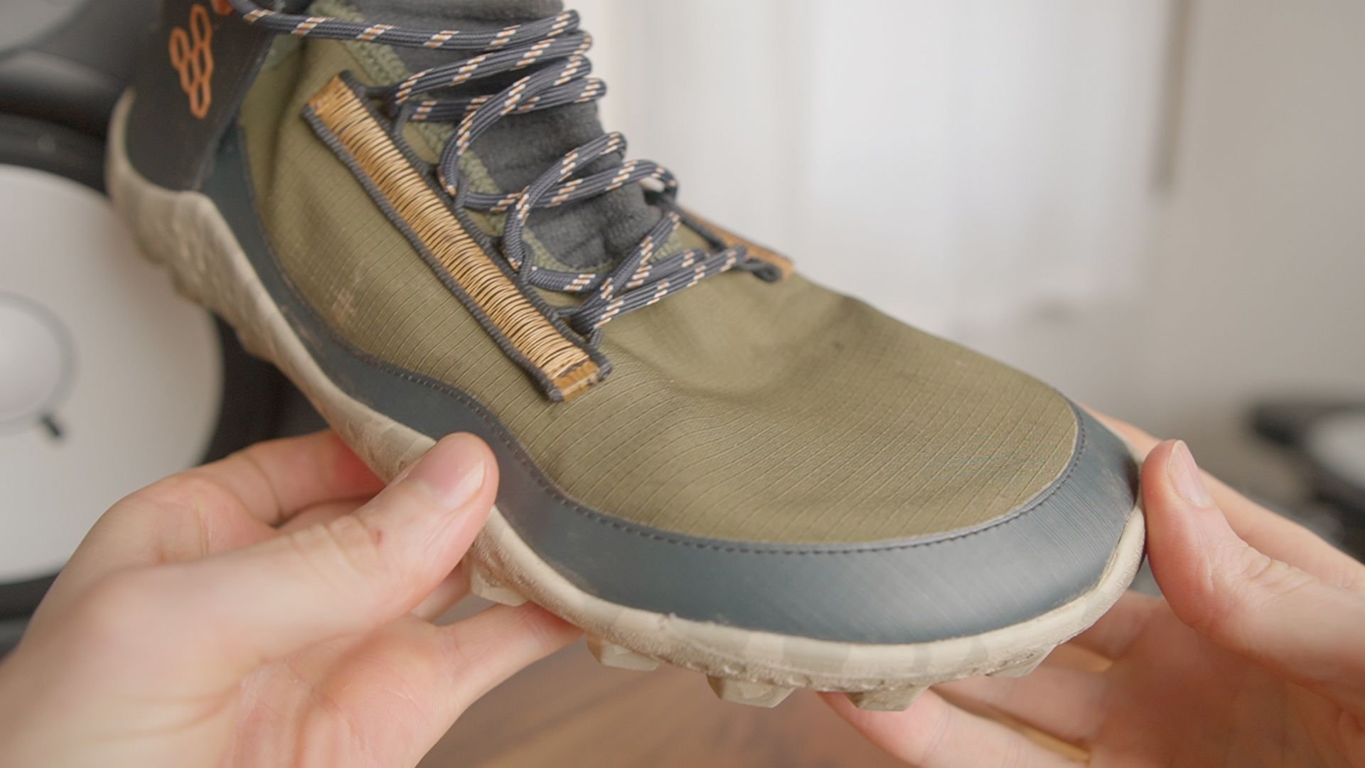 Because the Magna Lite has a wide foot-shaped toebox with a stitched guard and water-resistant vegan upper that’s woven with rip-stop, plus reinforced lace loops, a heel strap to prevent tear-outs, and a slip-on collar.