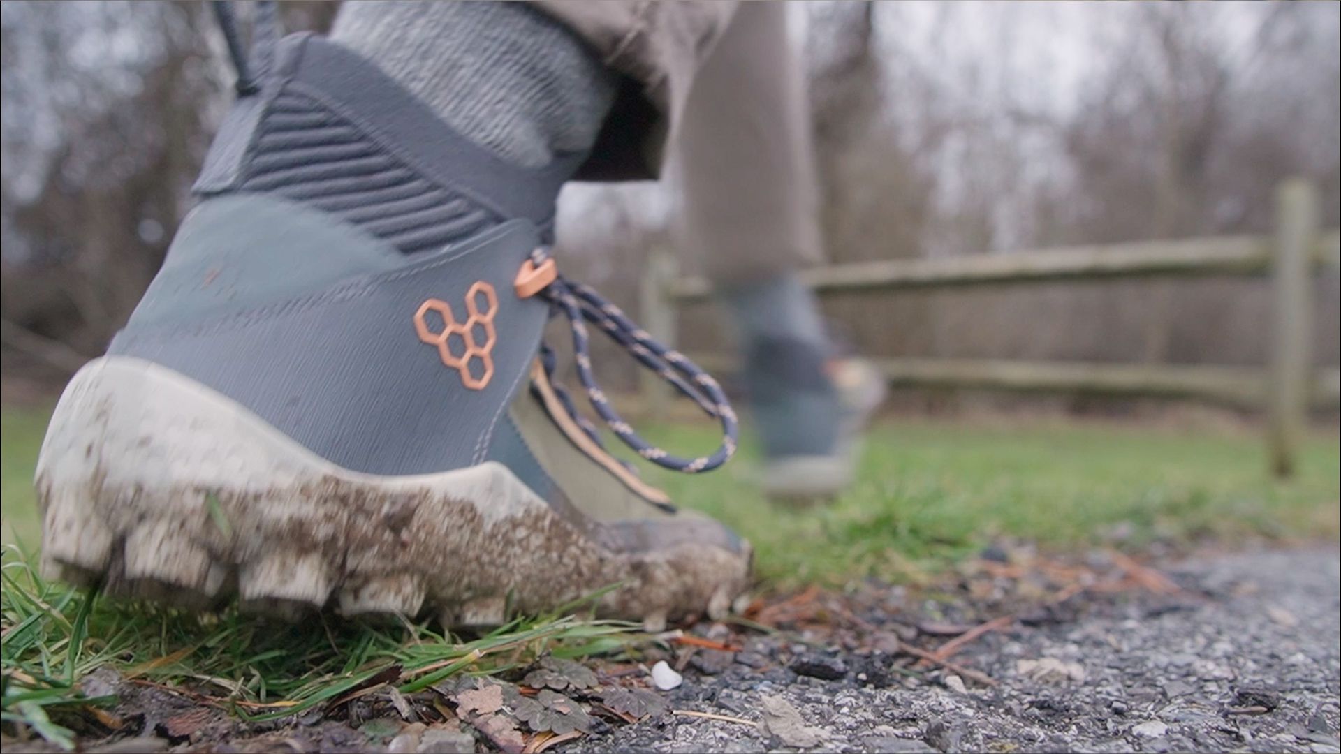 Because the vegan upper is wide and water-resistant, the slip-on collar is super comfortable for longer milage, and the aggressive tread provides some excellent grip on soft ground terrain, like dirt, mud, and slush.