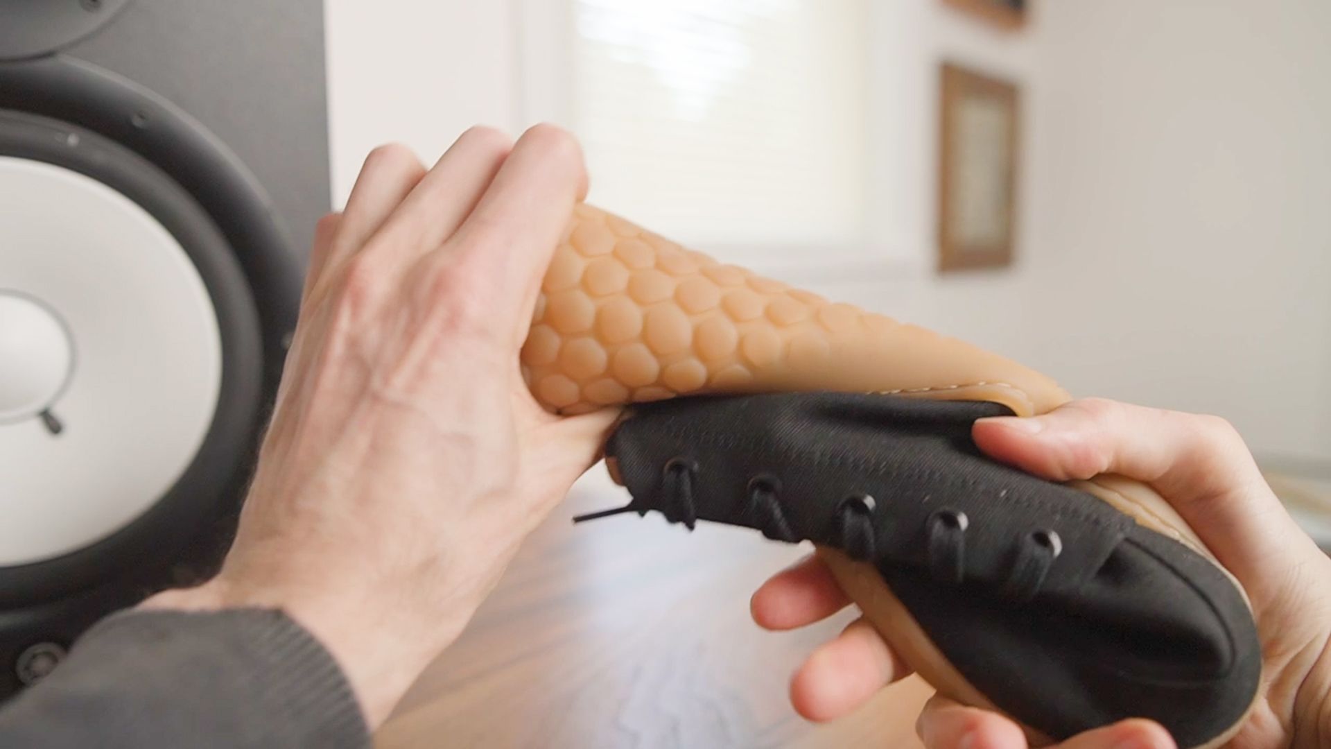 Underneath there’s an ultra flexible 3.5mm sole with a rounded, slip-resistant tread that’s ideal for walking on pavement and concrete.