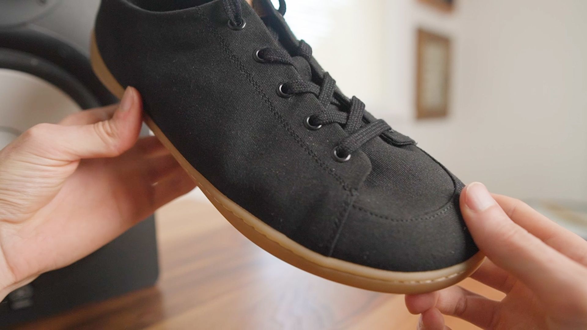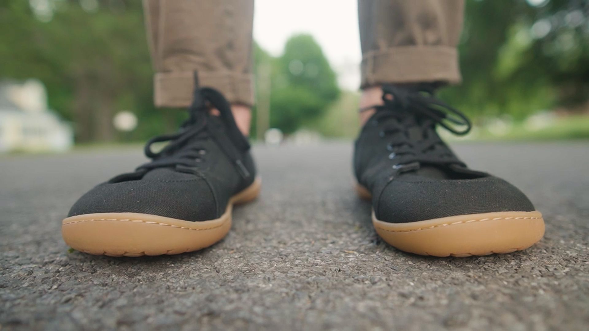 Because while they look slim and stylish, the organic cotton upper has tons of volume and the thin 3.5mm sole feels soft and grippy on pavement.