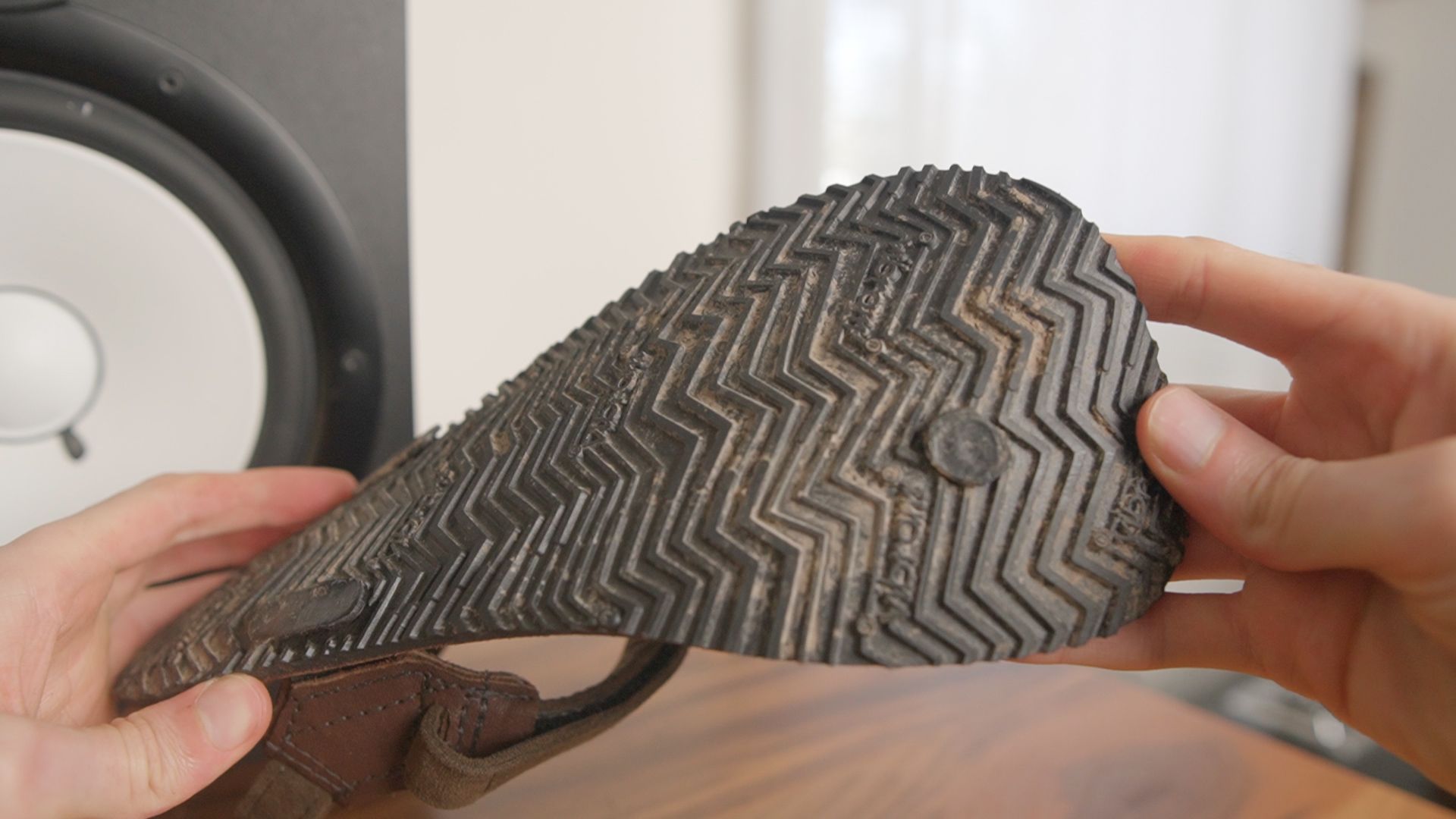 So heading out for a walk the zig-zag tread was plenty durable for cruising along pavement, but the leather felt slightly softer than pure rubber or synthetic and there wasn’t a single place anywhere on the Alpha BlackBear’s that rubbed on my feet, unlike the harder posts on my Shamma Warriors, which required a bit of DIY padding.