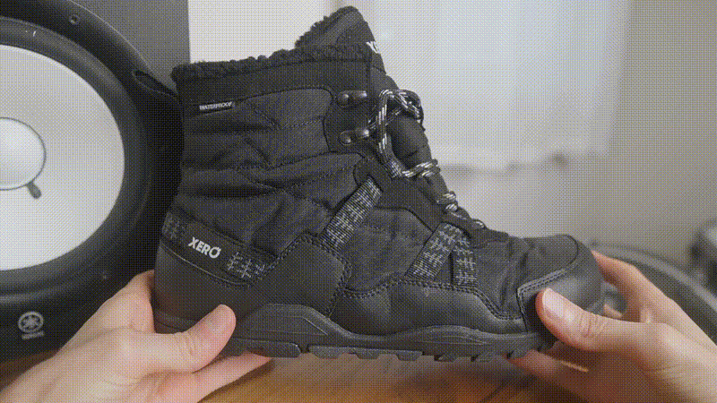 Hello, my name’s Andrew, and these are the Xero Alpine, a winter barefoot boot with a waterproof upper, fleece insulation, and aggressive tread for cold weather hiking.