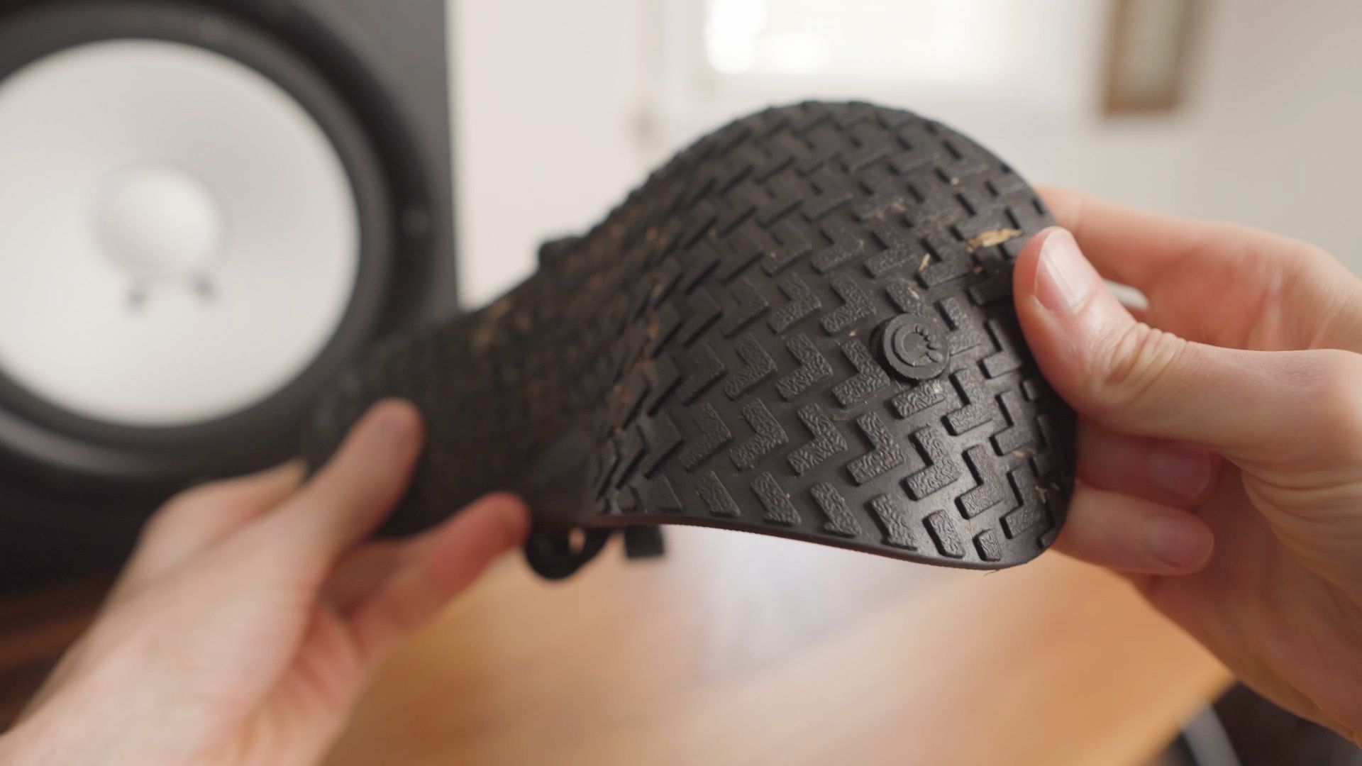 Underneath there’s a minimal tread, which is angled in both directions for grip…
