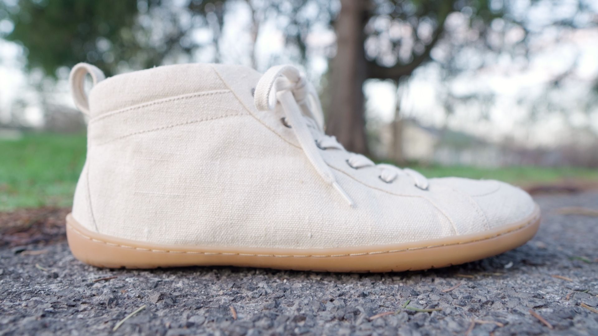 Barefoot casual shoes with an extra-wide organic undyed hemp/cotton upper and minimal sole.