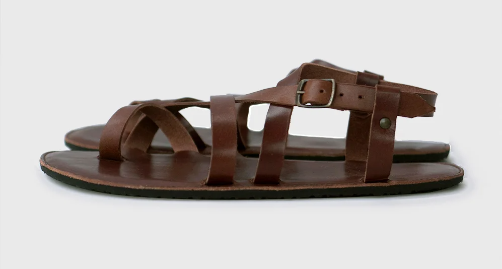 Custom-made leather sandals with a thin 6mm Vibram sole, leather straps, and wide toebox (wait times can vary).