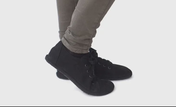 Barefoot shoe with thin 4mm sole, 3mm cork insole, medium width toebox, and leather upper.