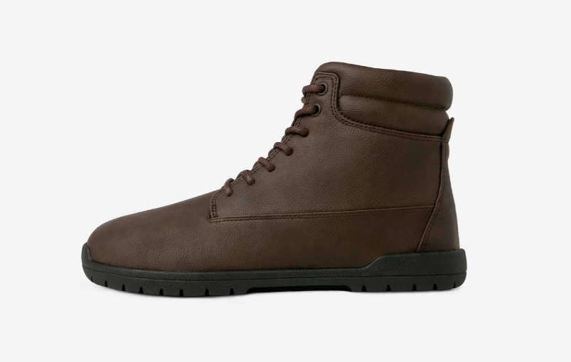 High-top vegan leather boot with a 5mm zero-drop sole, water-repellant upper, and wide toebox.