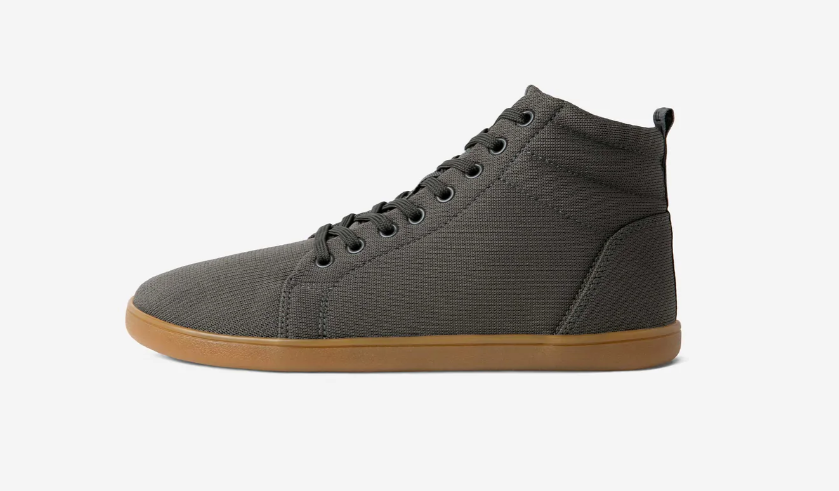 Barefoot high-top sneaker with a 5mm sole, synthetic upper, and wide, foot-shaped toebox.