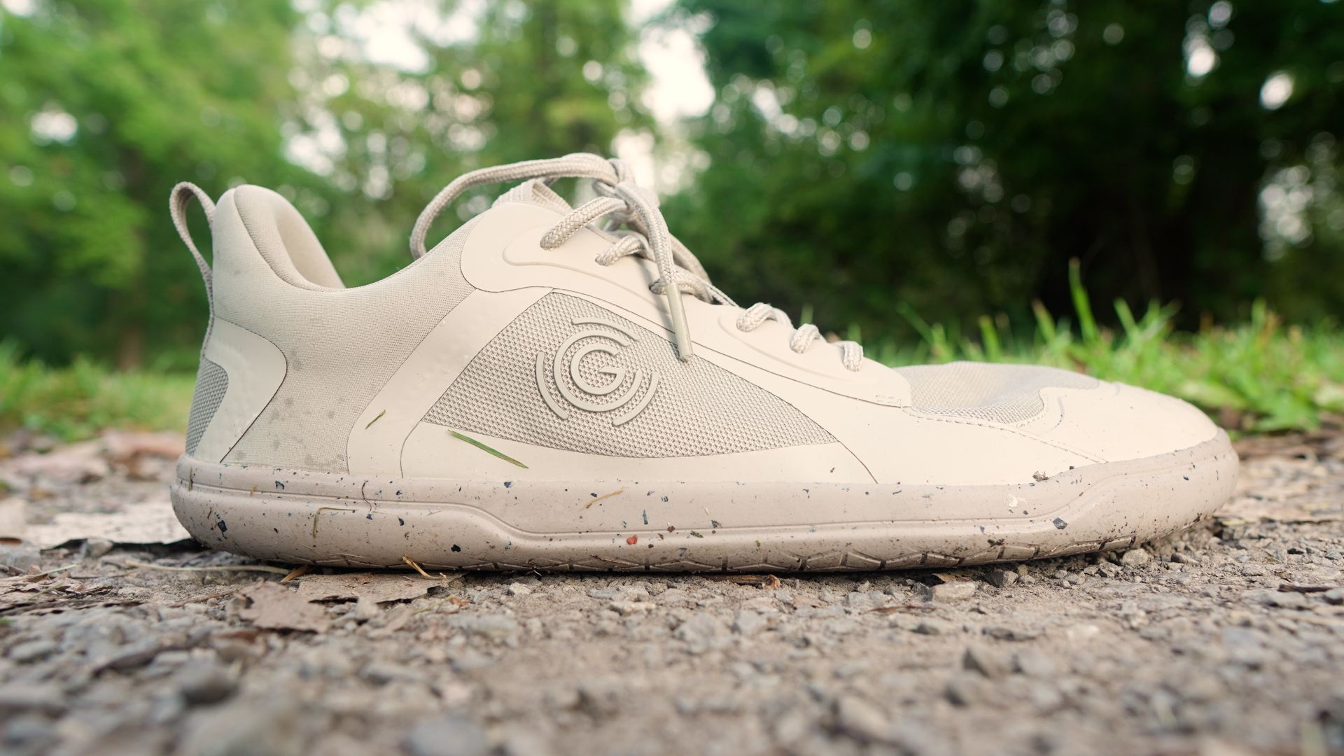 Groundies has a wide fit with a foot-shaped toebox, 7–7.5mm sole, great flexibility, and minimal tread, and are made with leather, synthetic, rubber, vegan, natural, and latex materials.