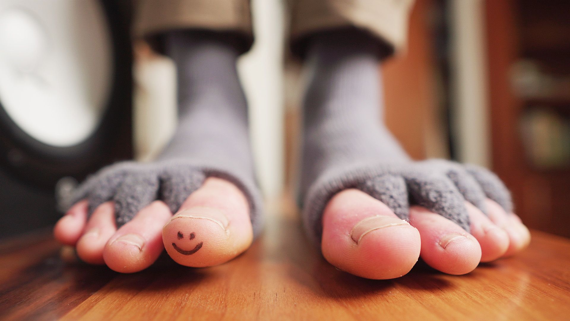 Barefoot alignment socks made with stretchy cotton fabric and soft adjustable toe spacers.