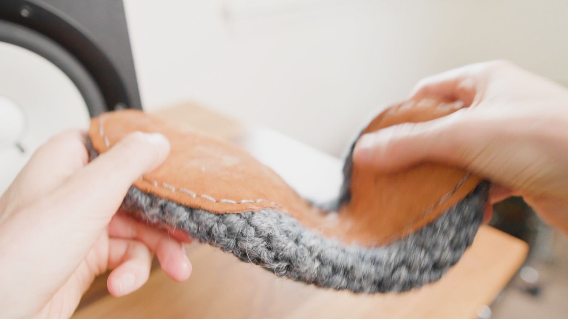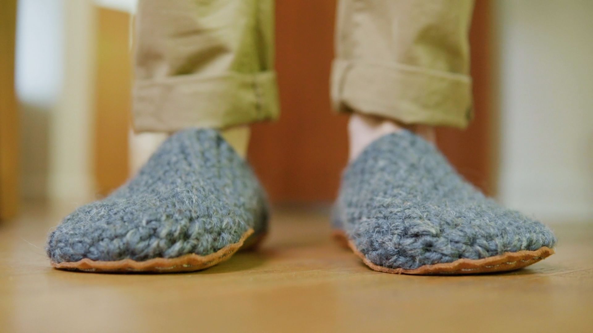 Summary: Barefoot slipper with an ethical handmade wide wool/bamboo upper and thin leather sole.