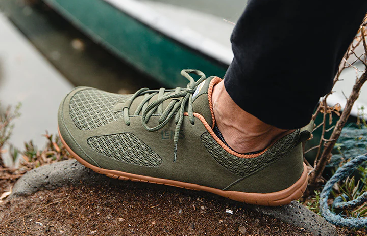 The Lems Primal has a wide foot-shaped toebox, semi thin 9mm outsole, good flexibility, and minimal tread, and is made with synthetic and vegan materials.