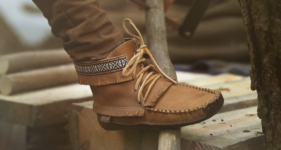 Summary: Traditional, hand-made Native American moccasins with soft, flexible moose hide leather sole and wide toebox that conforms to your feet (best for soft indoor/outdoor surfaces).