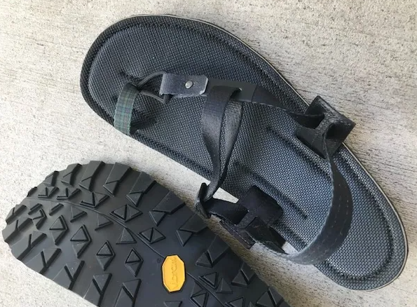 Summary: Handmade, customizable trail sandal with 10mm VIbram sole, semi-aggressive lugs, heel and toe strap, optional memory foam, deer/sheep skin inside strap, and wide, foot-shaped toebox.