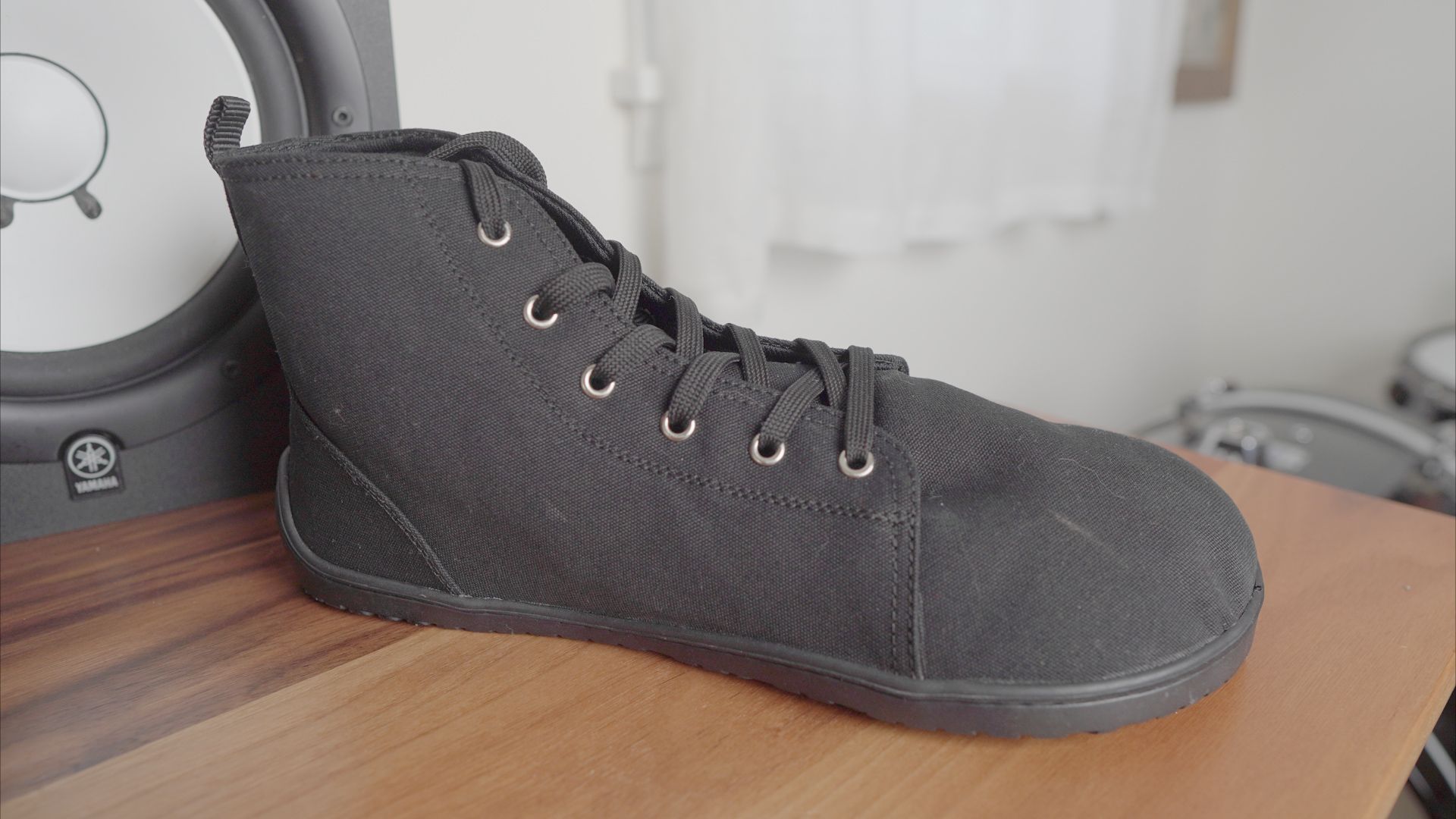 Barefoot shoe with a high-top extra-wide canvas upper and thin 4mm sole for urban casual.