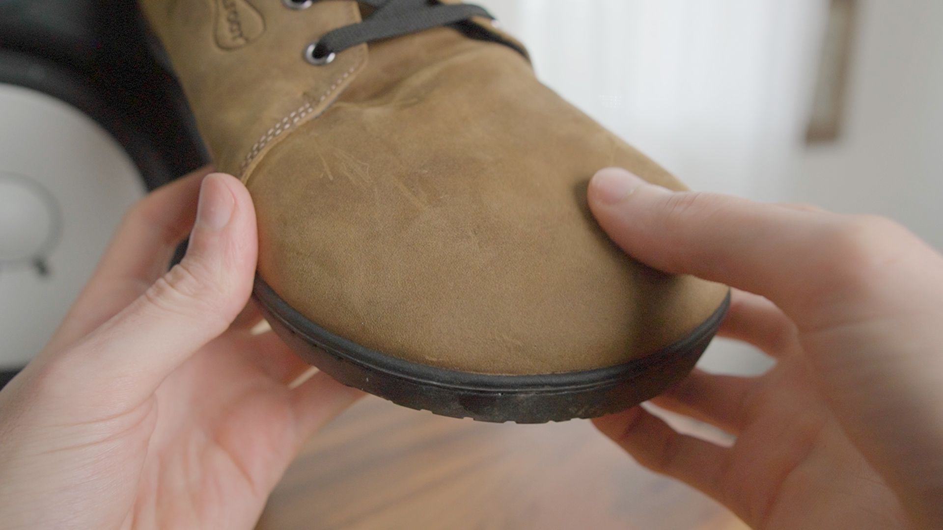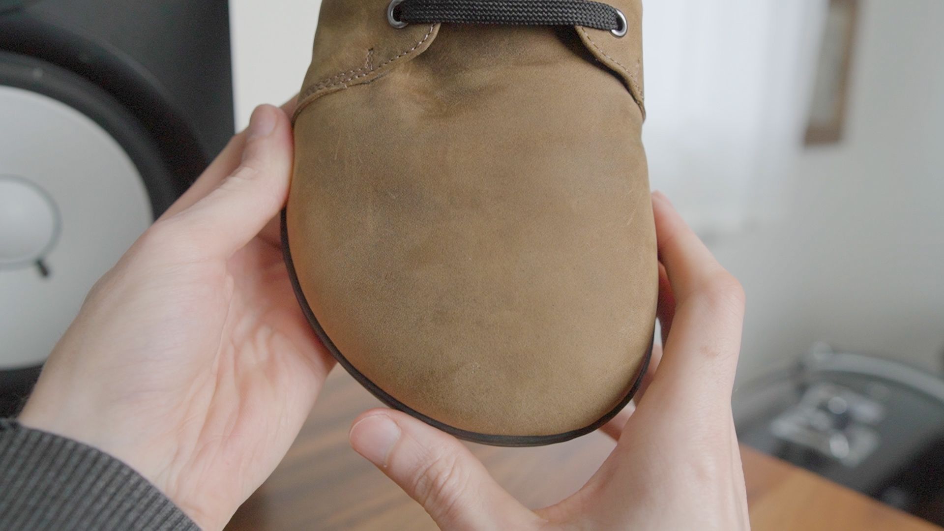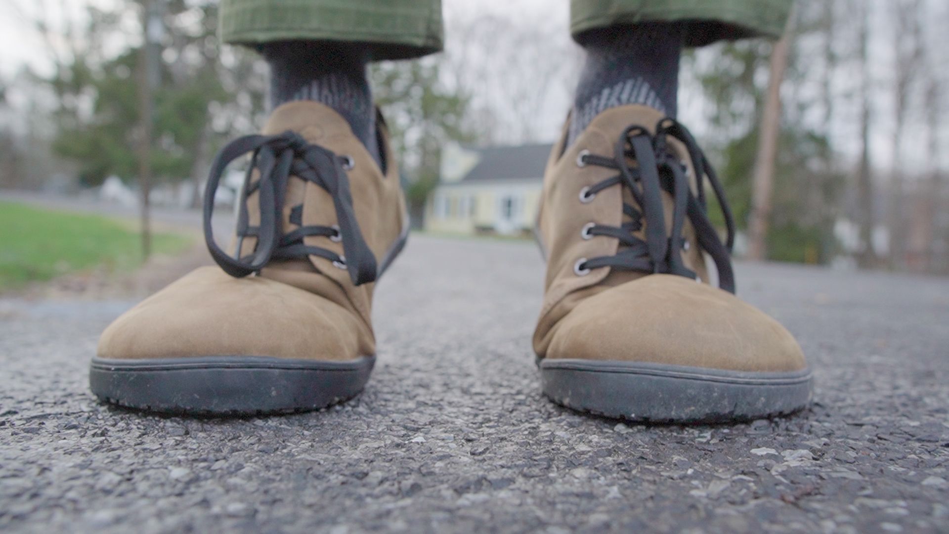 Summary: Casual barefoot shoe with a 4mm sole, minimal tread, extra-wide toebox, and leather upper.