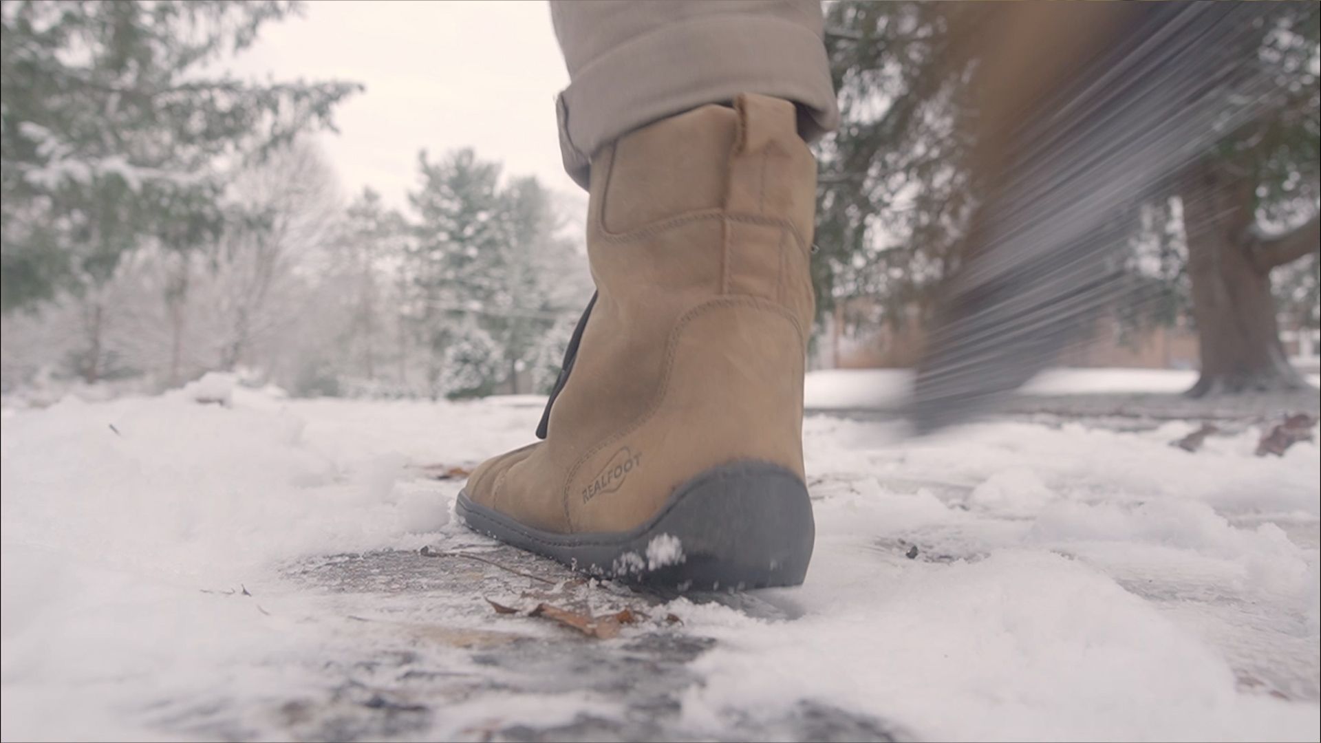 The Realfoot Farmer Winter provides great breathability, is water-resistant, has a minimal tread that can last for 5000+ miles, and is ideal for hiking, walking, and casual in freezing and cold climates.