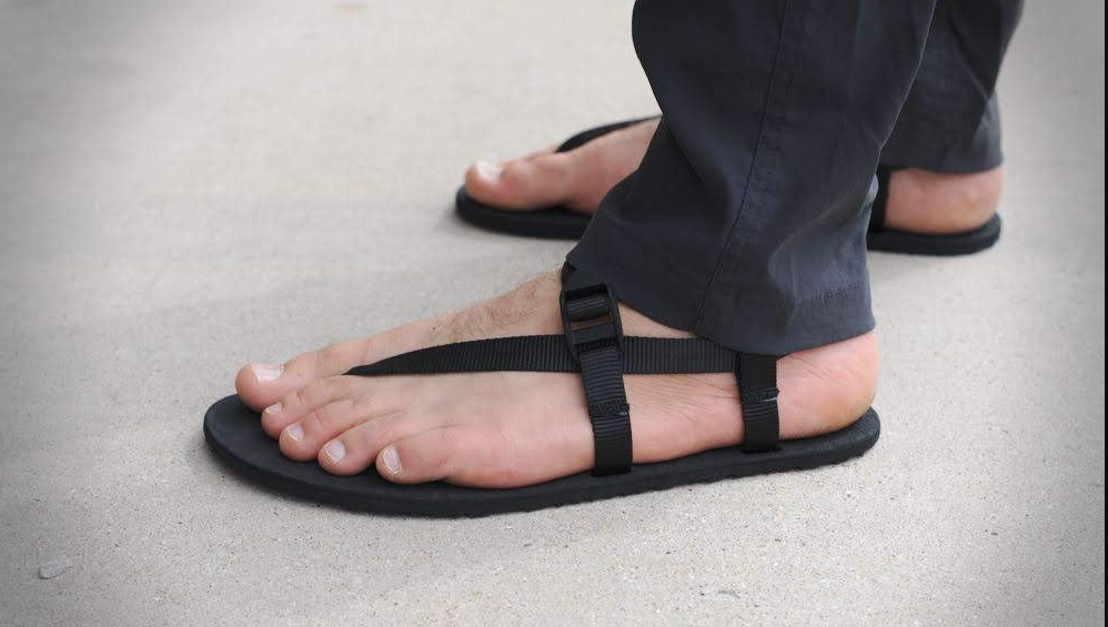Summary: Barefoot adventure sandals with 8mm sole, hybrid semi-aggressive tread for road and trail, multiple strap styles, buckle, and wide, foot-shaped toebox.