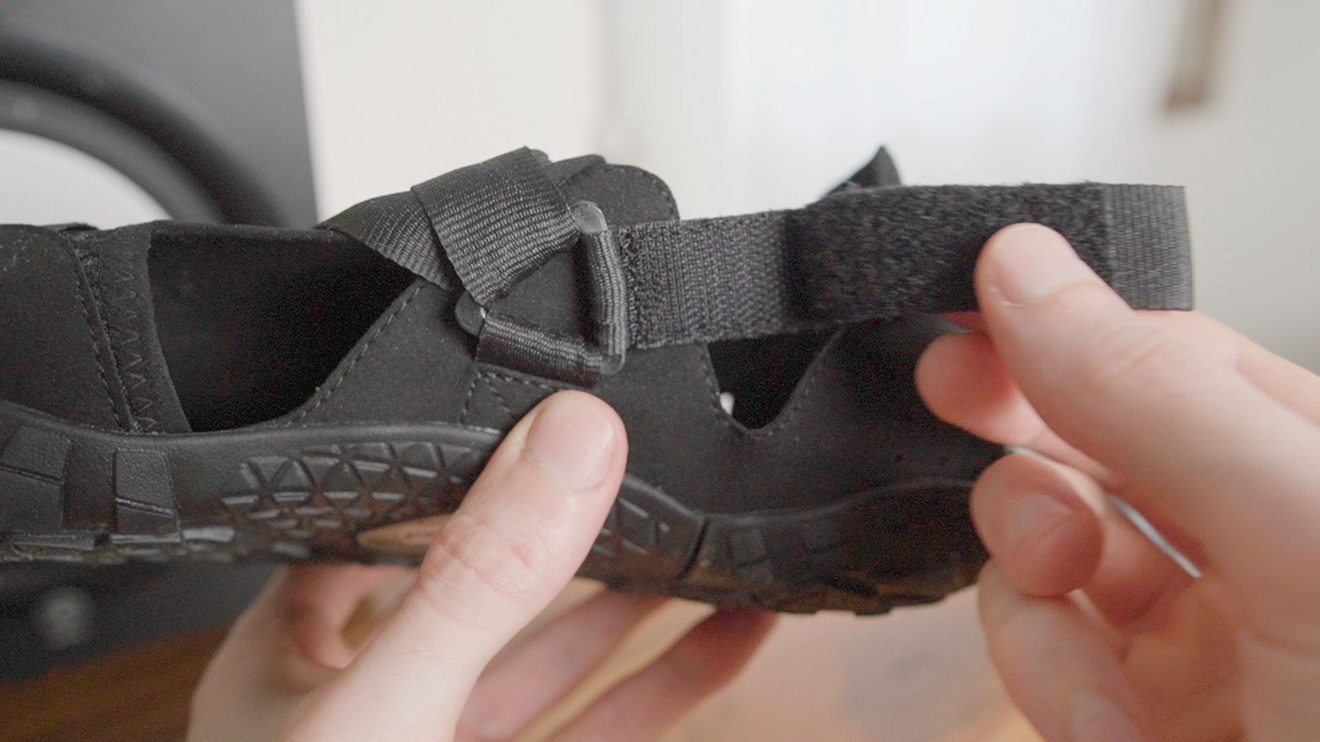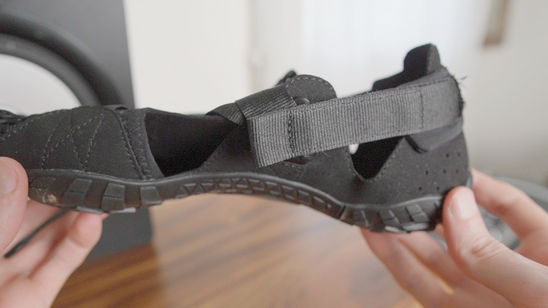 Summary: Barefoot sandal/shoe with a wide mesh upper and medium 5.7mm sole for water and hiking.