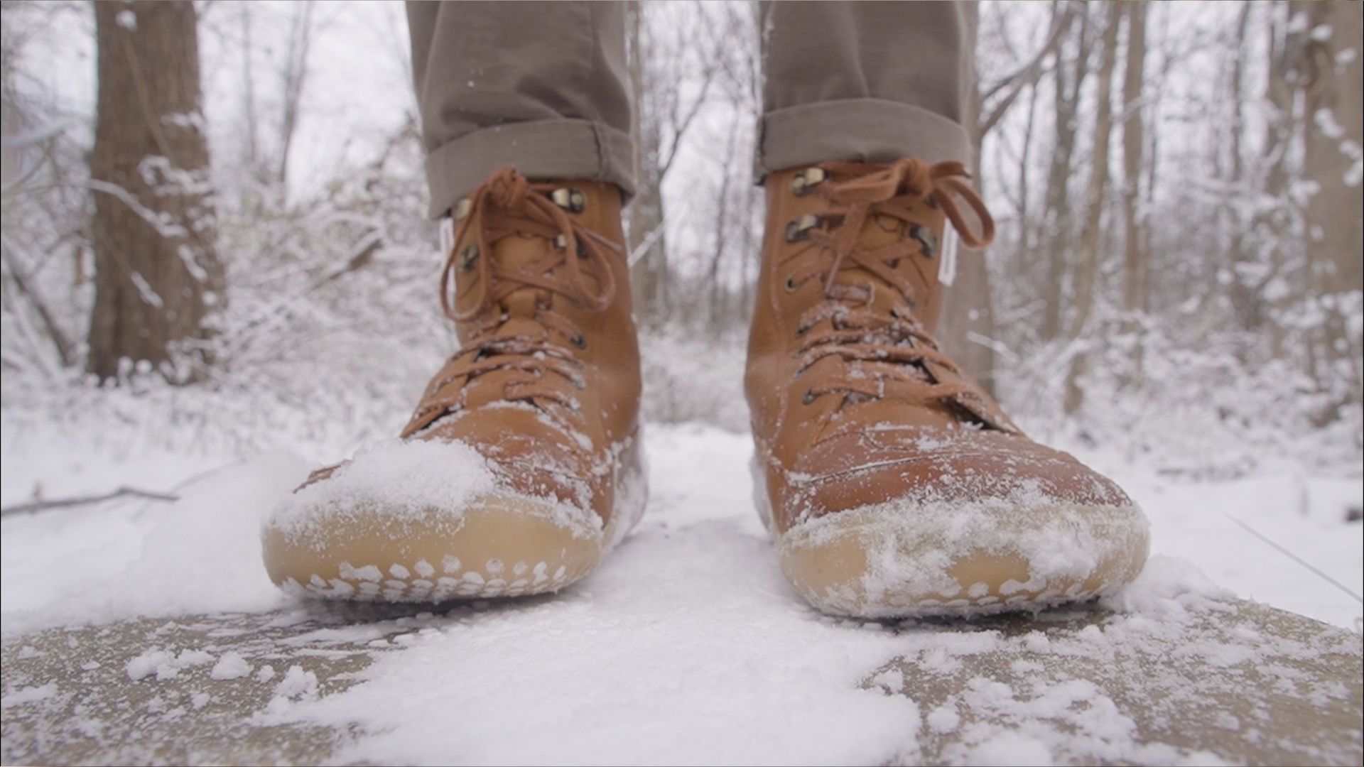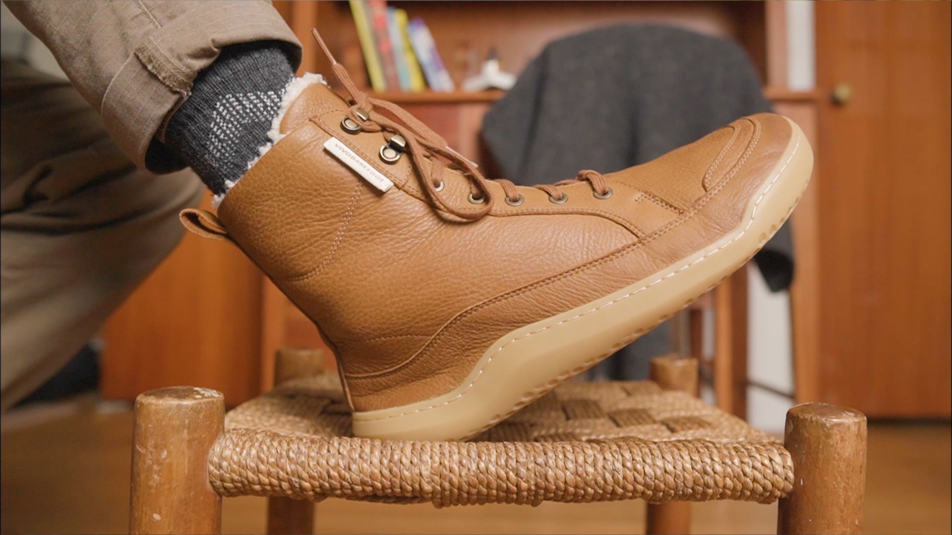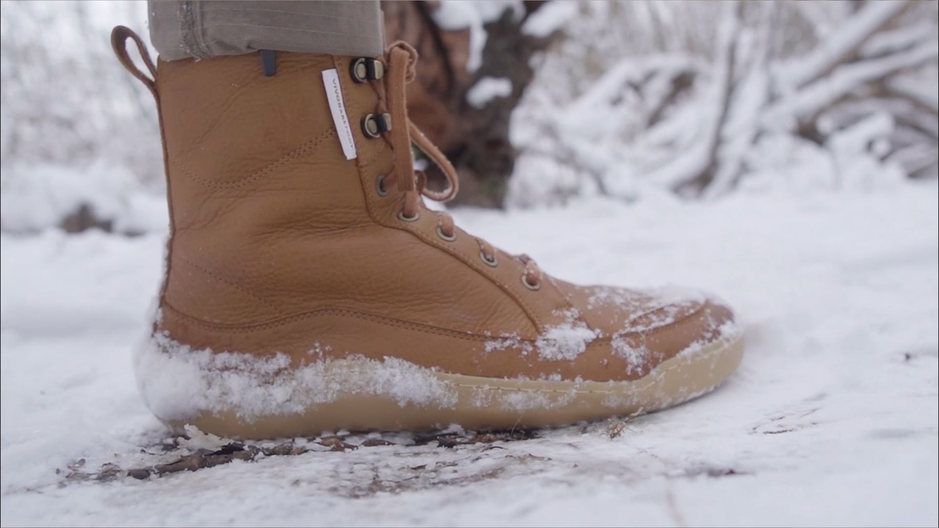 Winter barefoot boots with a 4mm sole, extra-wide leather upper, and lightweight insulation.