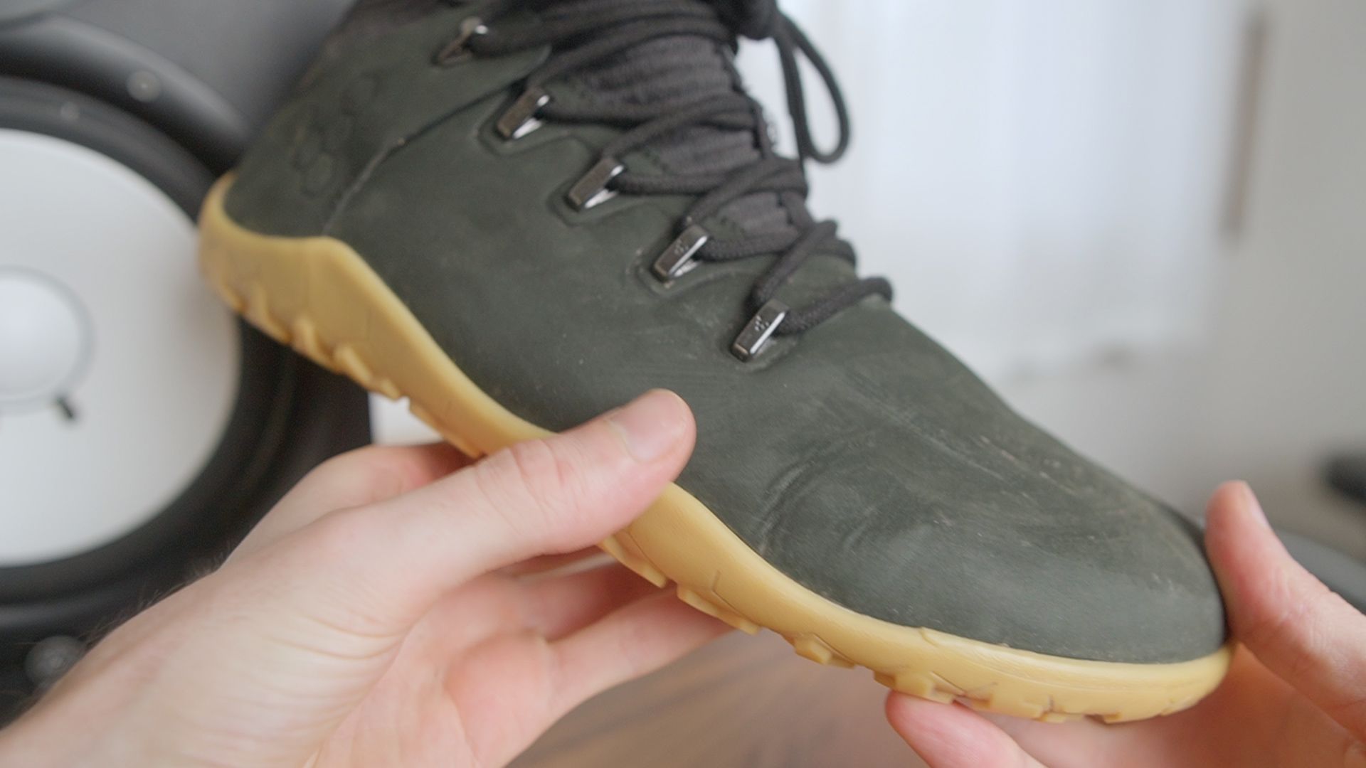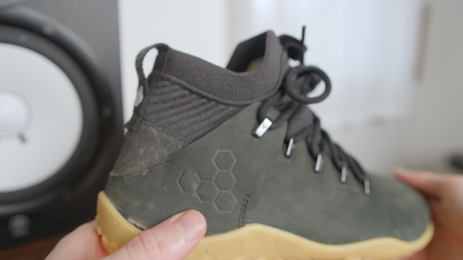 Barefoot hiking boot with a lightweight leather upper and semi-aggressive 5.5mm tread.