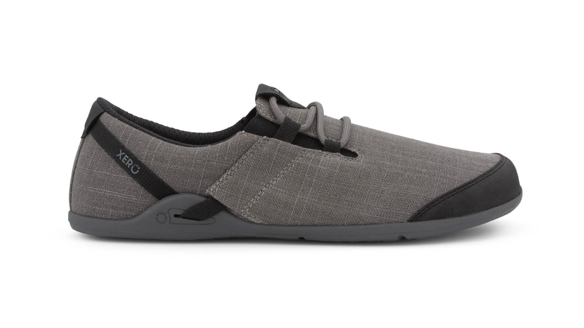 Barefoot slip-on shoe with a 5.5mm sole, wide canvas upper, and firm ground tread for casual.