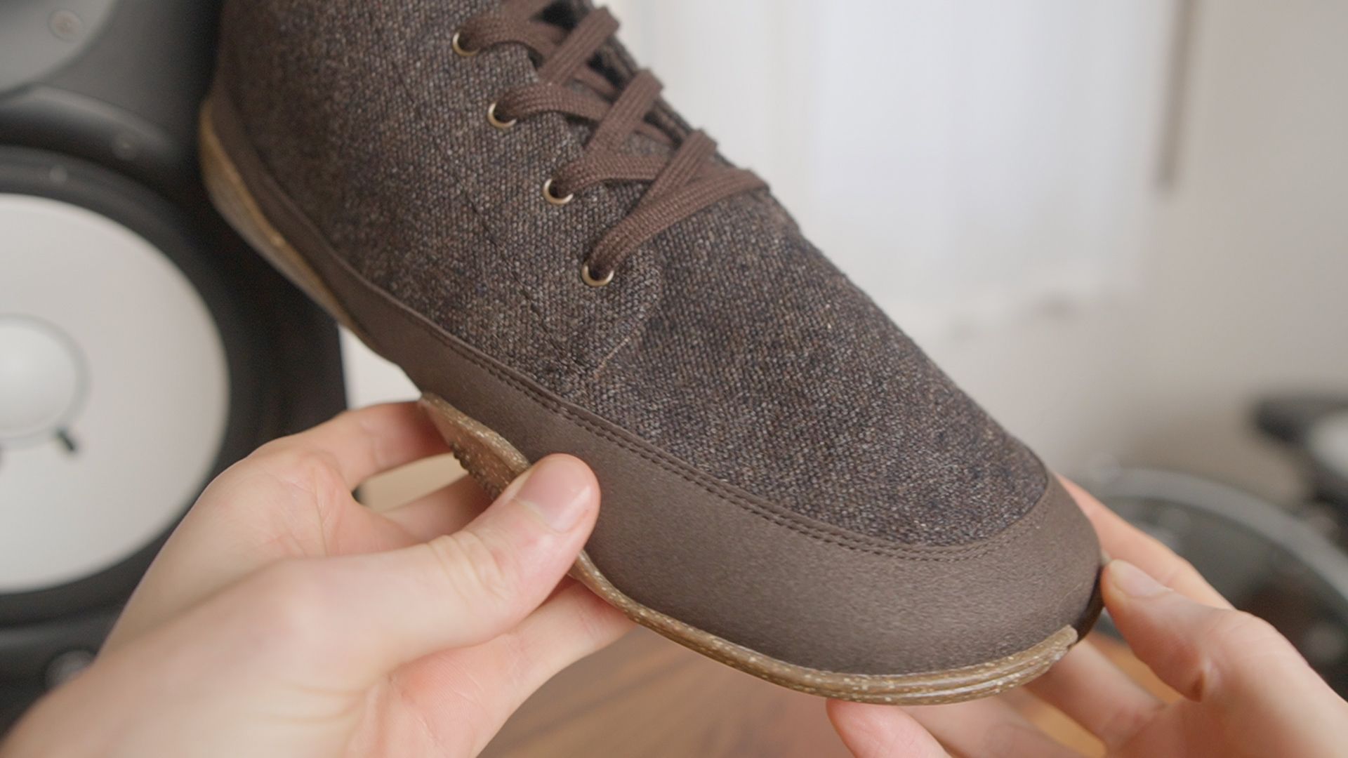Summary: Barefoot casual shoe with a 3.5mm sole, wide wool-hemp upper, and minimal tread for roads.