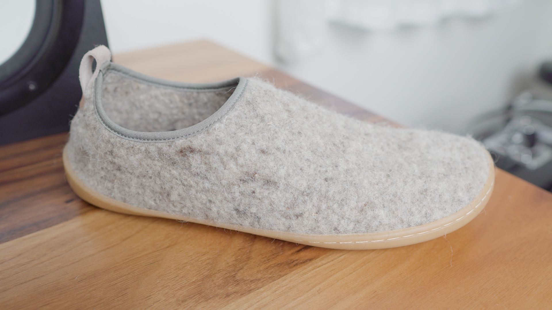 Summary: Barefoot slipper with a 3.5mm sole, wide merino wool upper, and minimal tread for indoors.