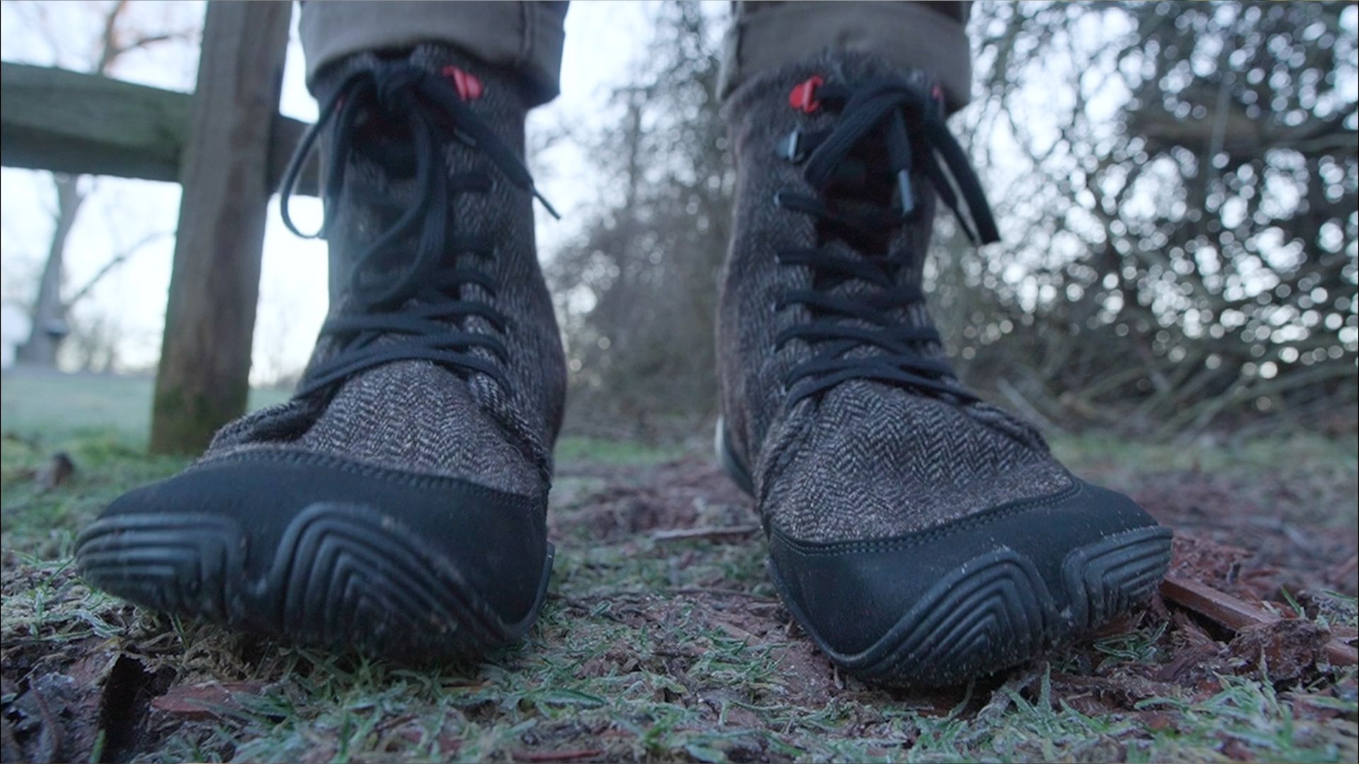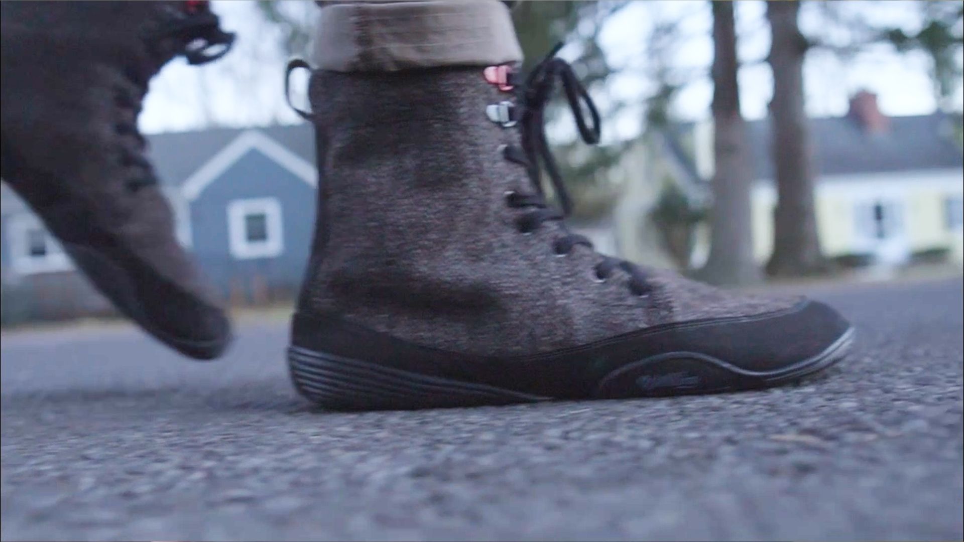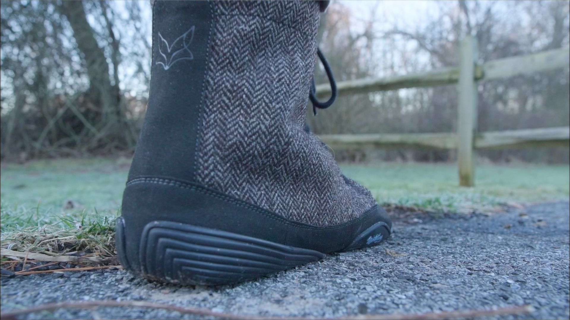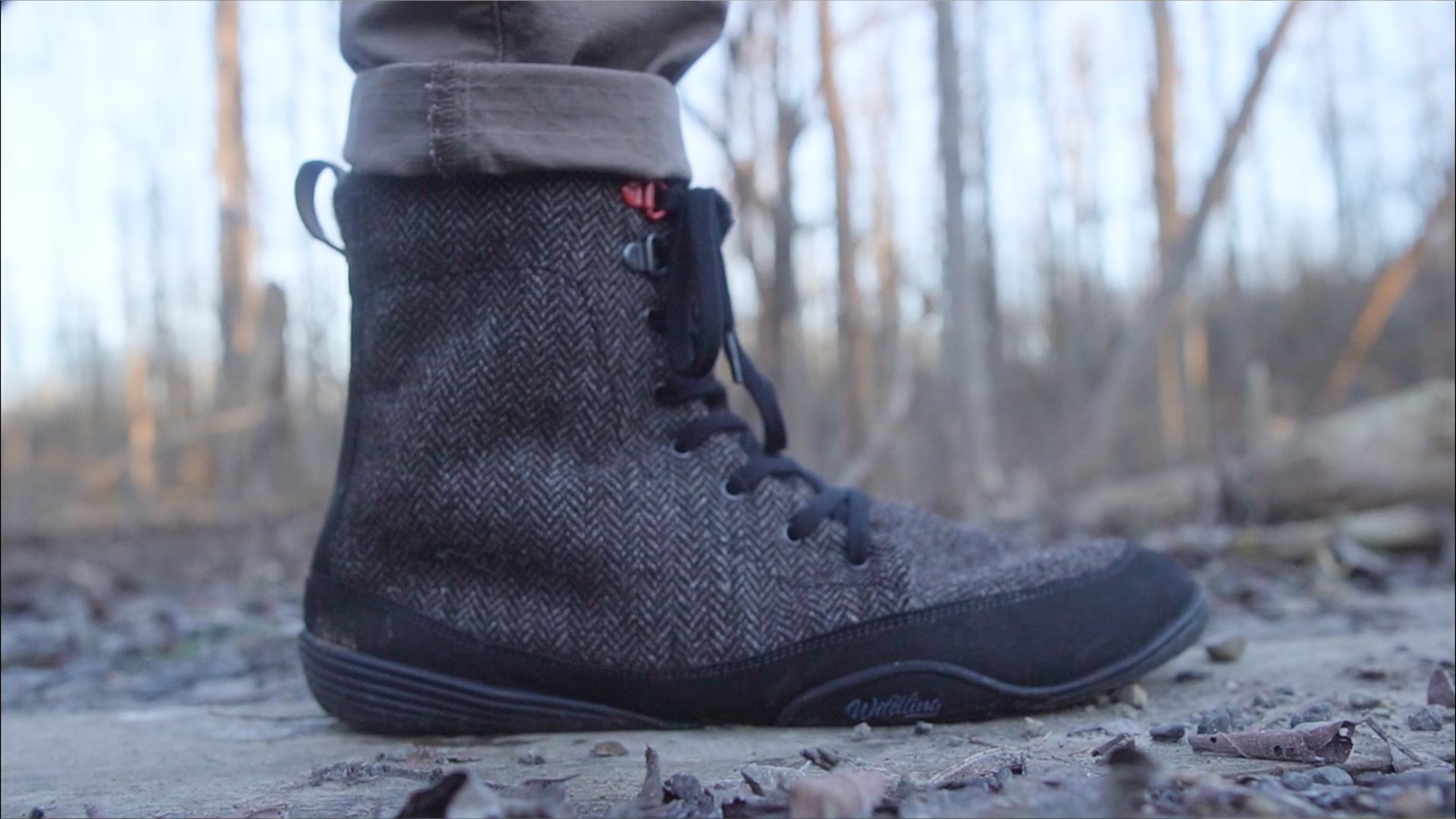 Summary: Barefoot boot with a 3.5mm sole, herringbone wool upper, and light tread for winter casual.