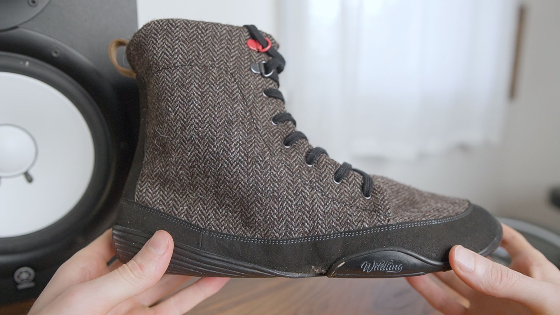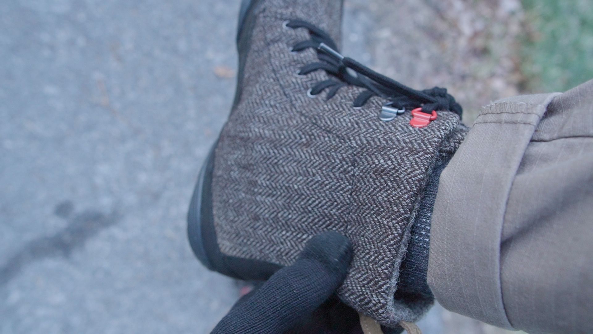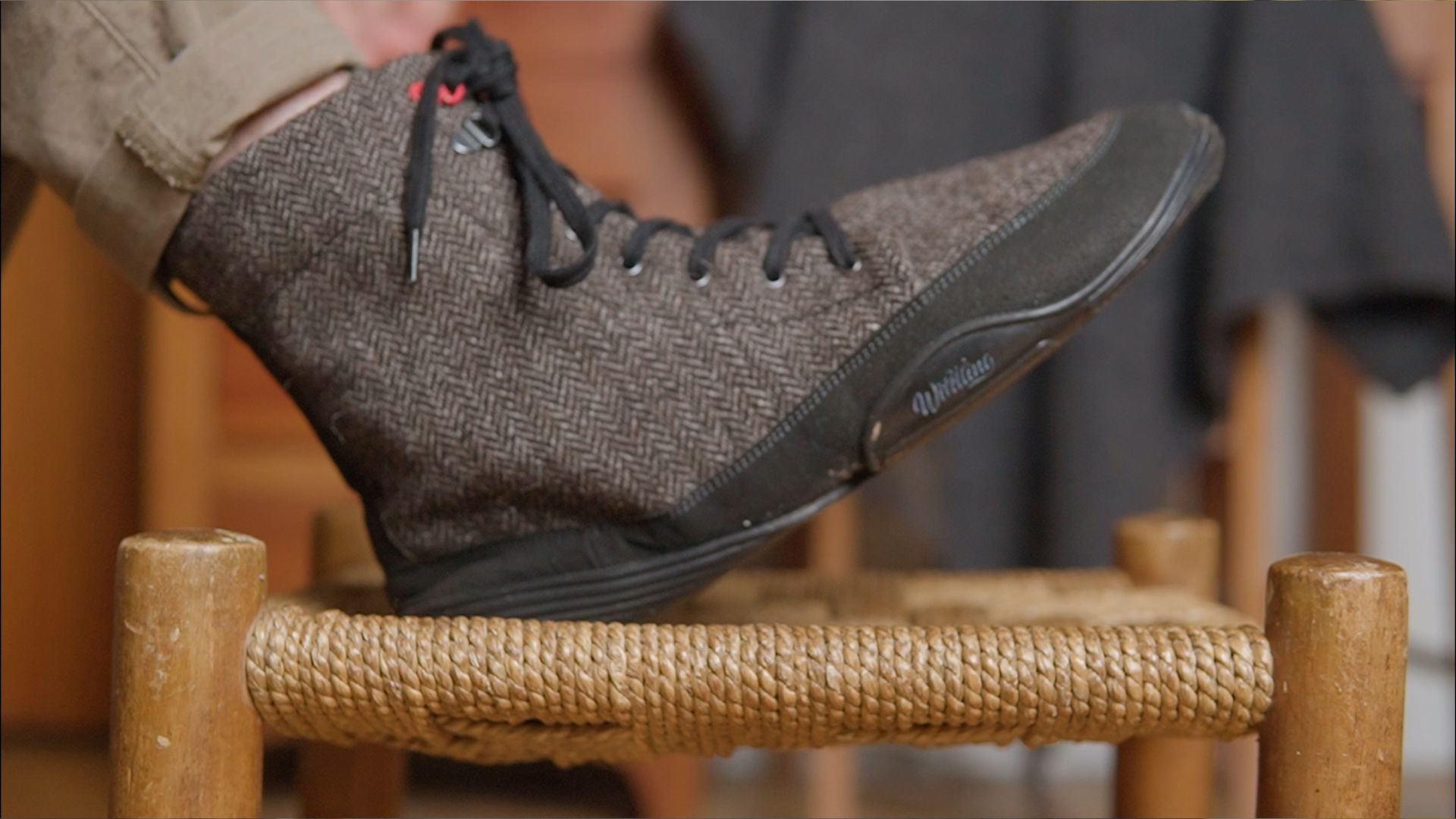 Summary: Barefoot boot with a 3.5mm sole, herringbone wool upper, and light tread for winter casual.
