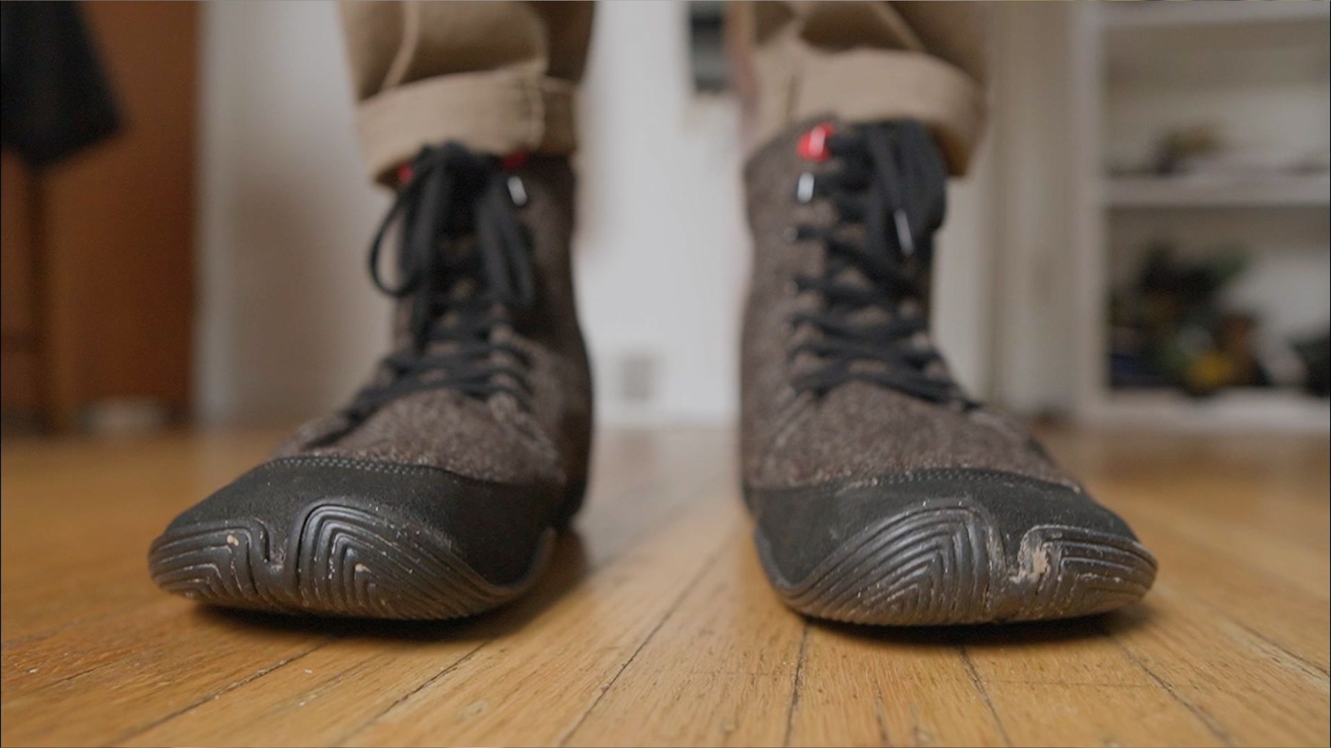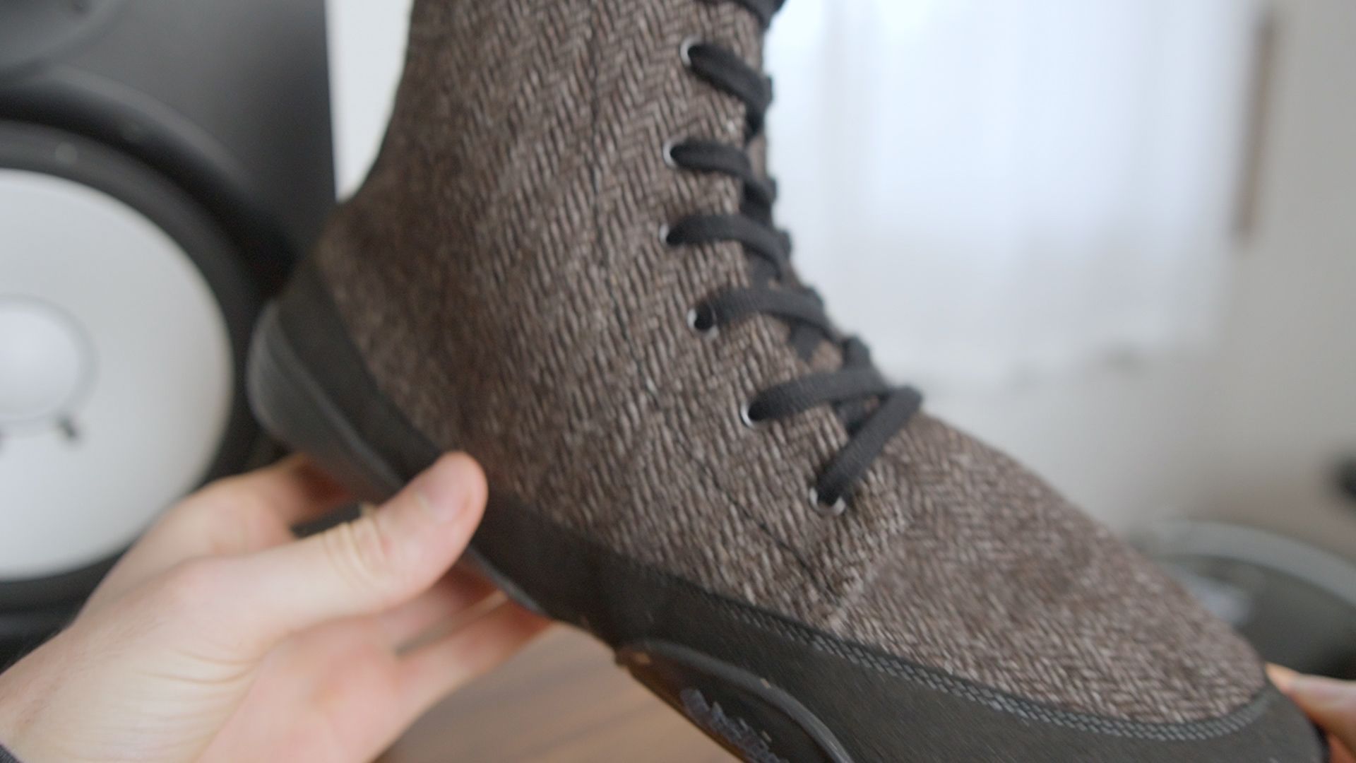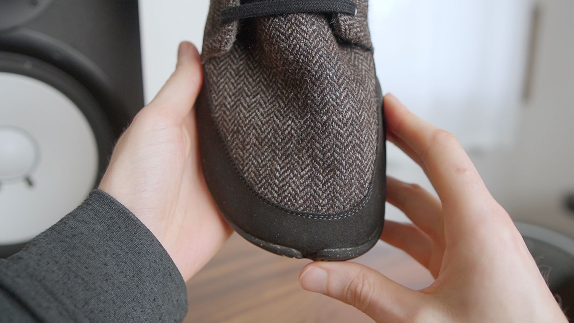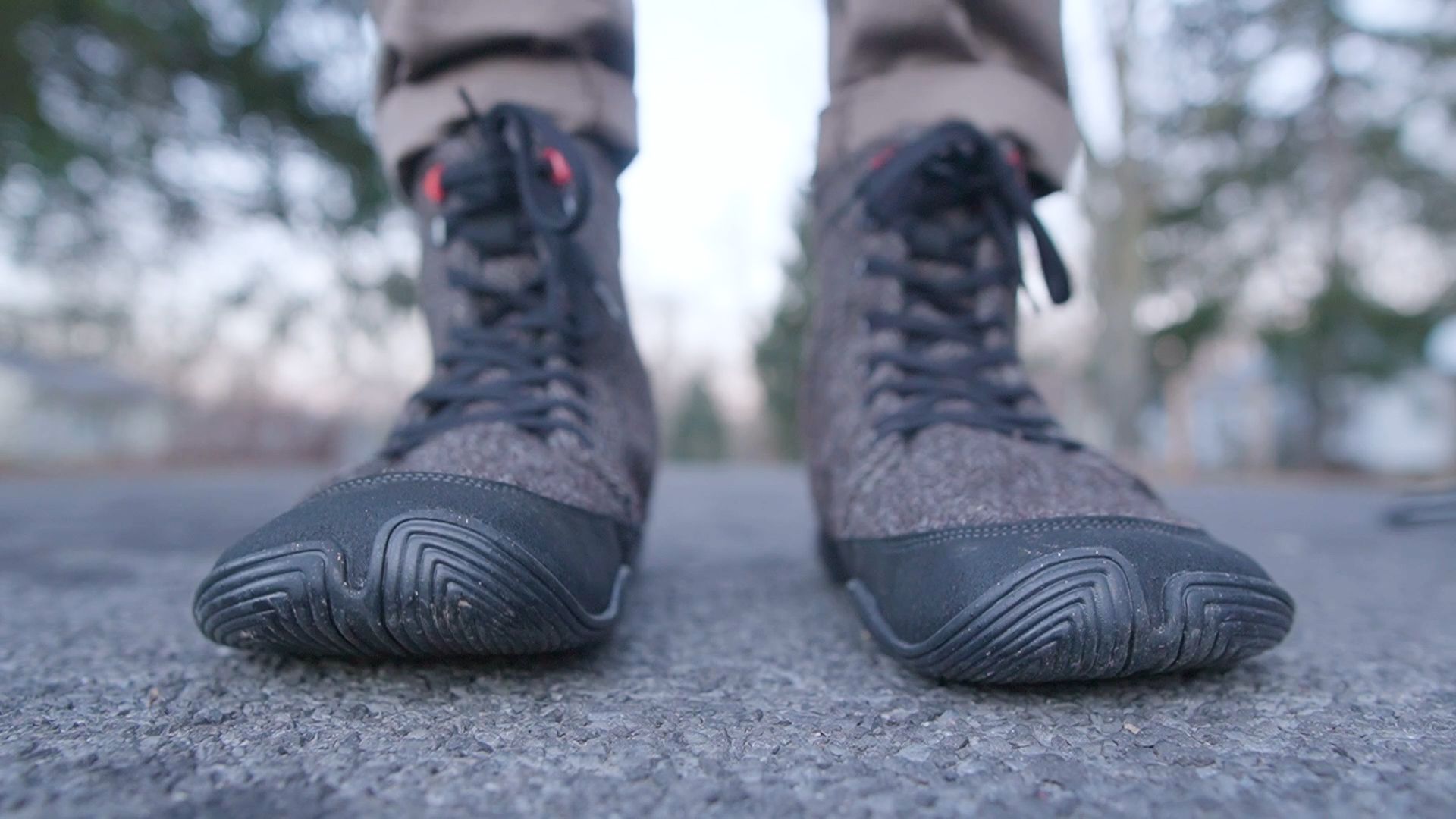 Summary: Barefoot boot with a 3.5mm sole, herringbone wool upper, and light tread for winter casual.