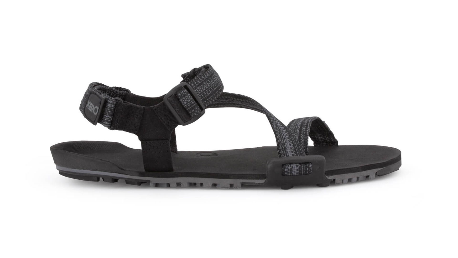 Barefoot hiking sandal with a 11mm sole, wide toebox, foam padding, and hybrid trail tread.